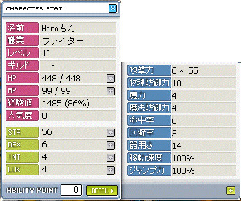 れもはDEX9でINT5、LUK4なので・・・