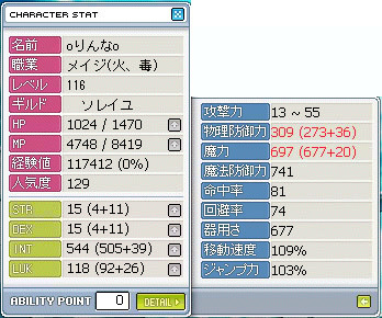 なんだかんだ狩場が空いてればlvはあがるもので、lv116となりましたw