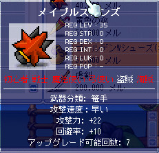 出るのか不安だったから、出てよかたw メイプルスロンズ攻撃+2でした
