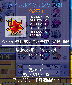 そして、メイプルイヤリング強化してみました。