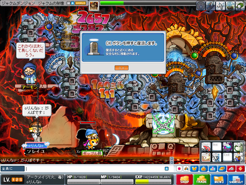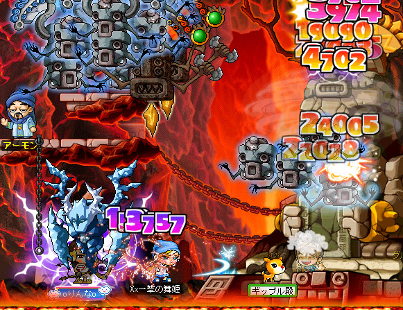 HPバーが黄色くなったところで、お墓がどんどん振ってきて、自分かな、自分かなとヒヤヒヤしながら回復は聖魔いないので自力で。ペットもしまってたので、自力で。